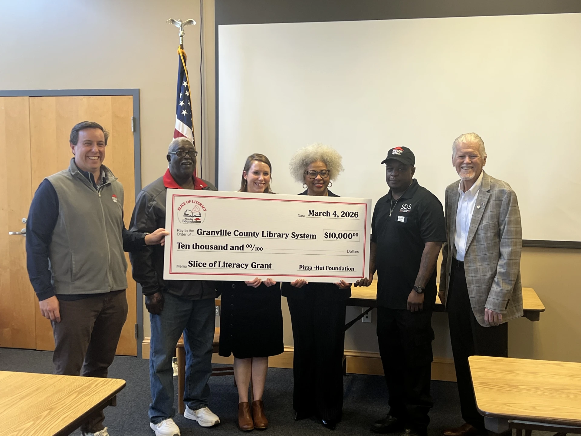 GRANVILLE COUNTY LIBRARY SYSTEM: The Pizza Hut Foundation, in partnership with the iconic BOOK IT! reading program, recently awarded a $10,000 Slice of Literacy Grant to the Granville County Library System in
